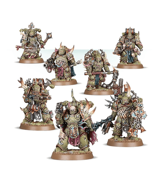 Bloated with festering corruption, Plague Marines form the mainstay of the Death Guard, and unlike many Traitor Legions their numbers have only swollen as the millennia have passed. Sworn to Nurgle’s service, Plague Marines have disgusting, rotted bodies that stink of decay. The putrescent slime that oozes from their sores corrodes armour boils away skin, yet despite their horrific disfigurements they are fearsome warriors indeed.