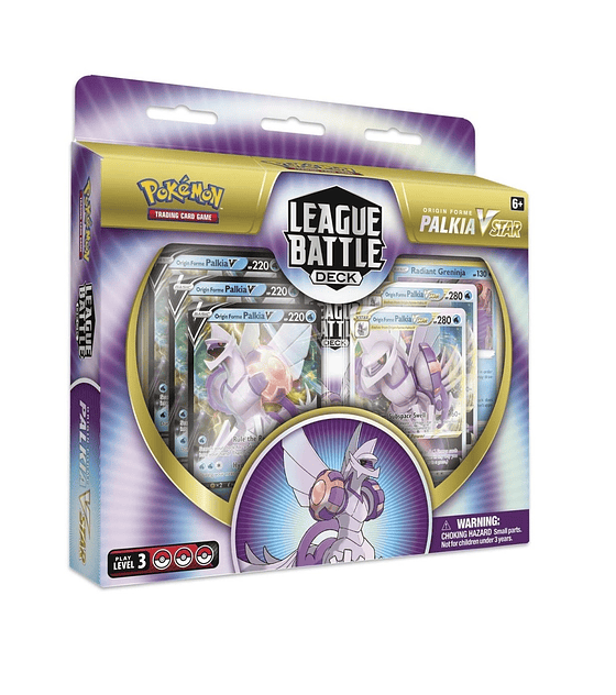Open a Star Portal to gather power and unleash a Subspace Swell with Origin Forme Palkia VSTAR! This Pokémon VSTAR is yours in this powerful, League-ready deck for skilled Pokémon TCG players. With premium foil cards, sought-after power cards, and a well-tuned set of Pokémon and Trainer cards, the Origin Forme Palkia VSTAR League Battle Deck does more than feature a Legendary Pokémon of the Sinnoh region: it puts together all the elements to support you in your next match against friends and neighbors, in person or online!