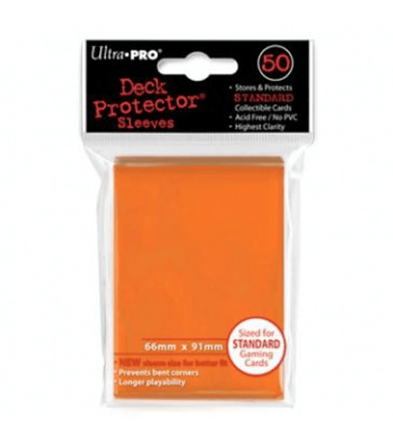 Solid Orange Deck Protectors with Ultra PRO's hologram quality seal. Stores and protects standard sized cards. 50-count pack. All Ultra PRO Deck Protectors are archival-safe and acid-free.